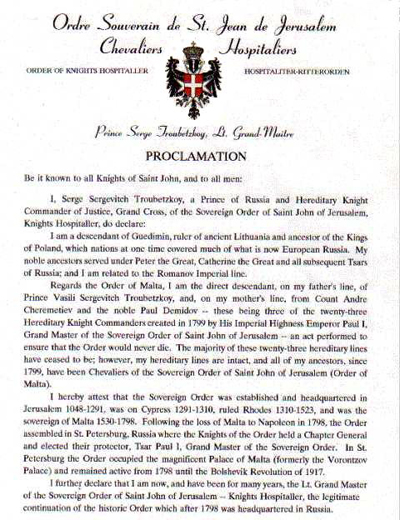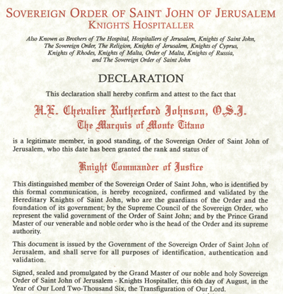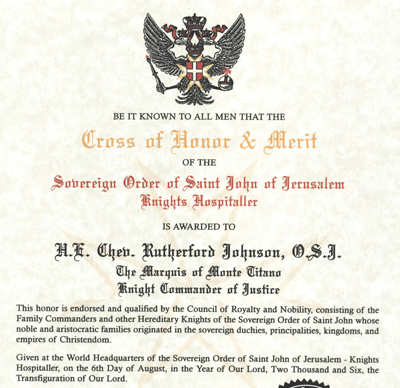Russian/Yugoslavian Knights of St. John. He was also previously recognized