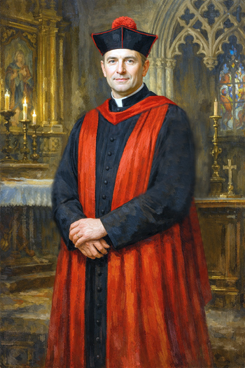 Shown here is a cleric with a doctorate in Sacred Theology (red trim on biretta).