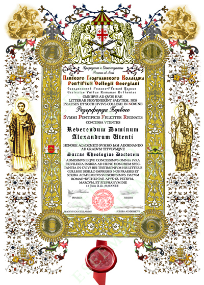 Example of Pontifical Georgian College Doctoral Diploma, around 18"x24" in size