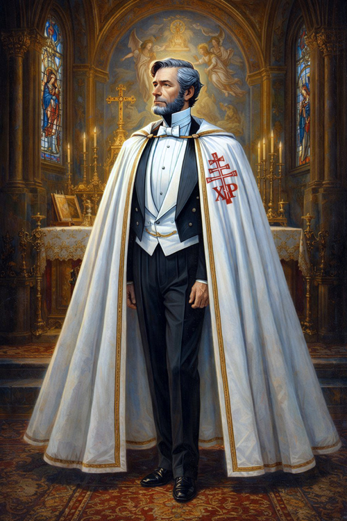 in the senior chivalric regalia of the Roman-Ruthenian Church and State.