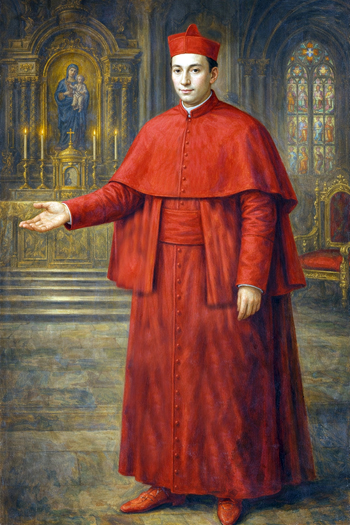 Shown here is a cleric with a doctorate in Sacred Theology (red trim on biretta).