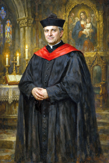 Example of academic dress of a regular cleric with a Licentiate. This cleric is shown wearing the black clerical toga over
